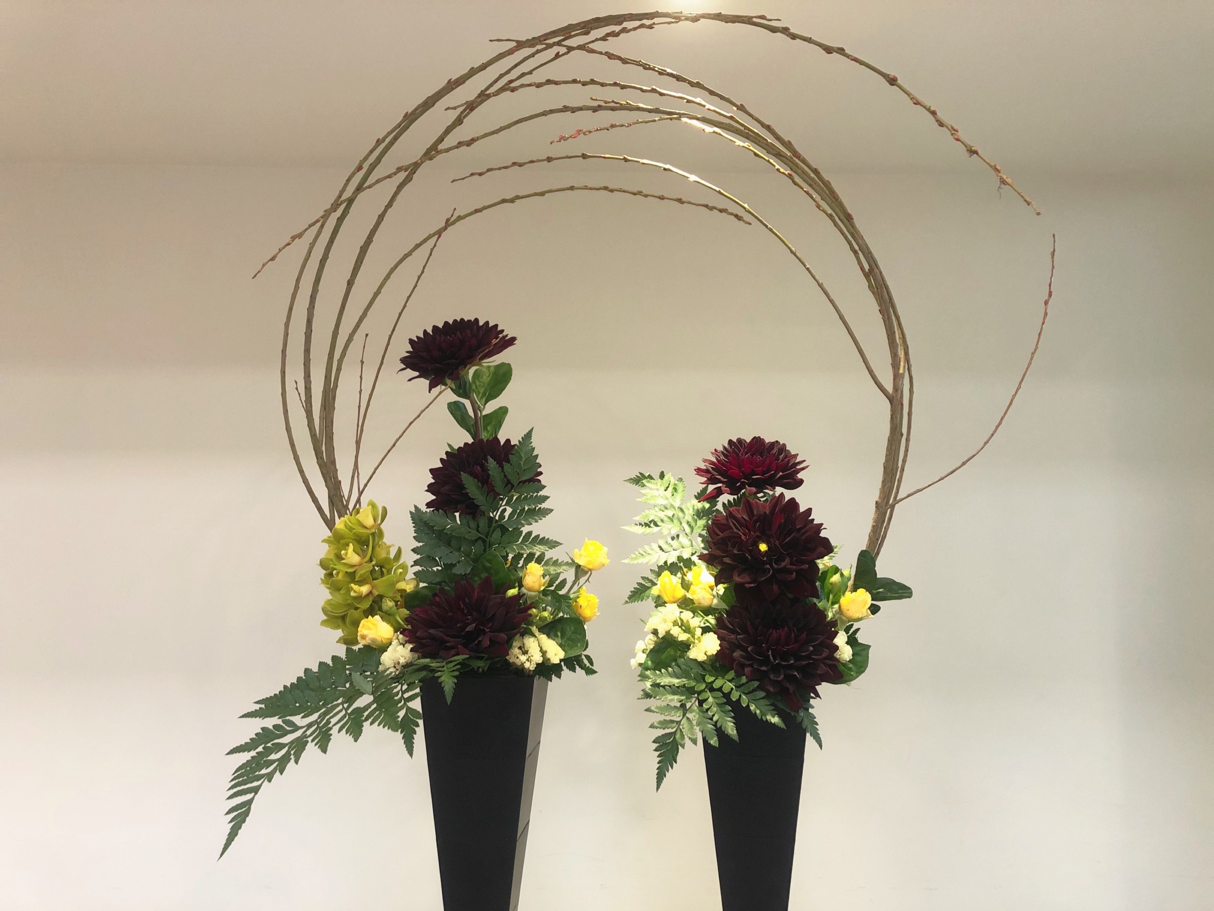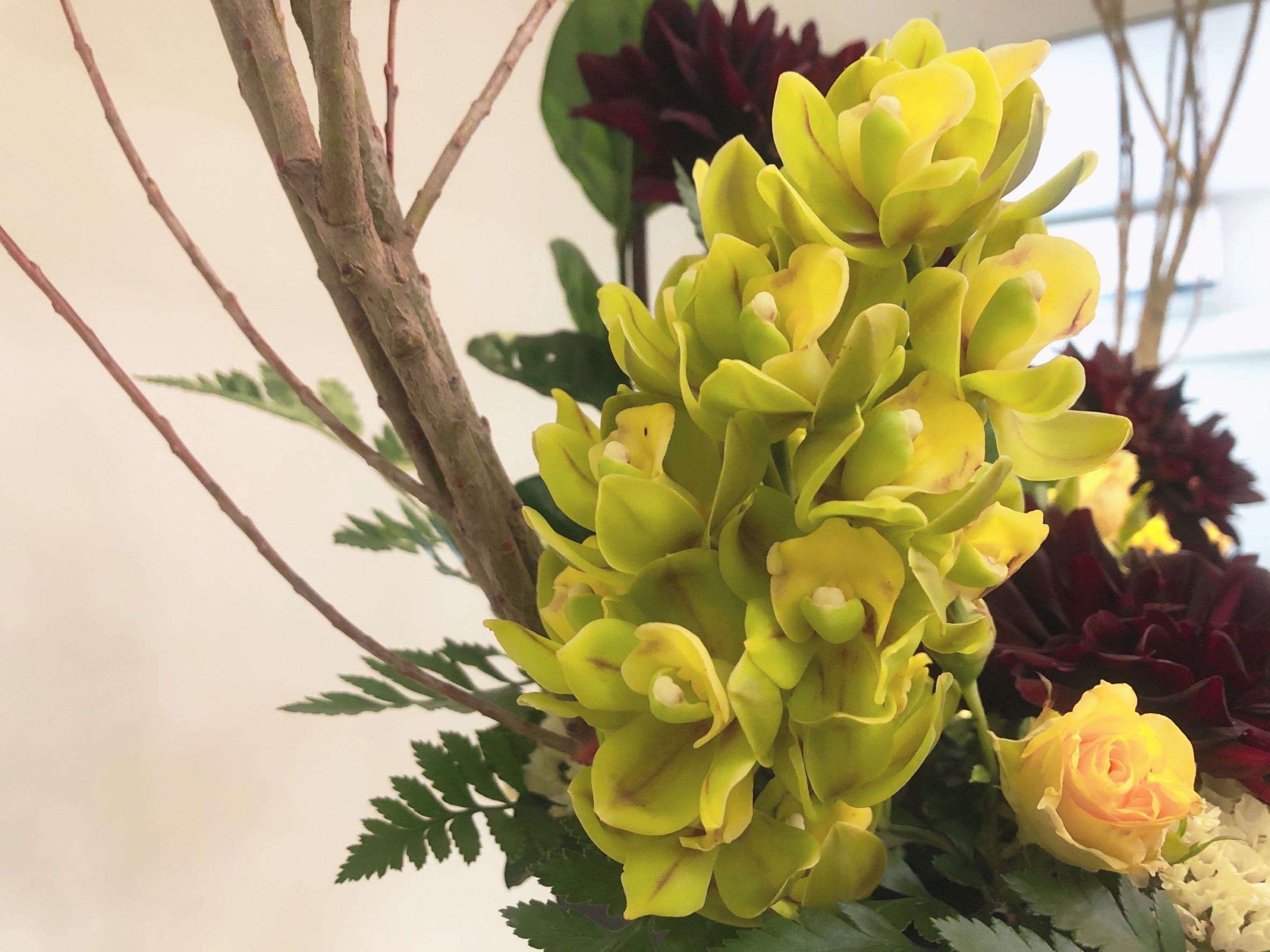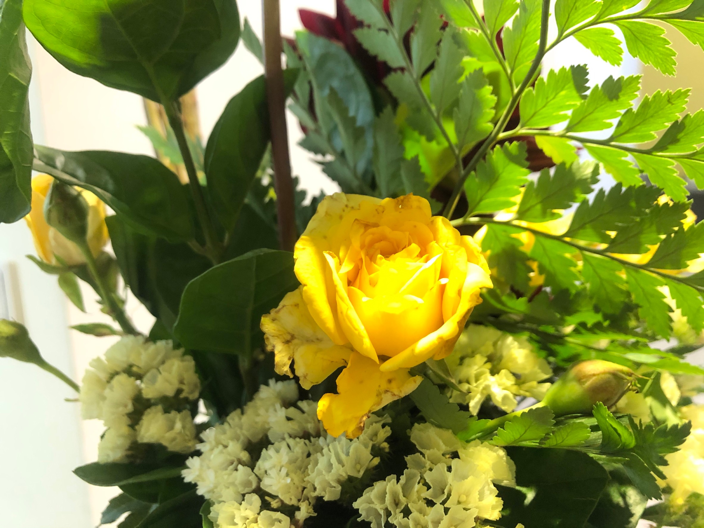 大麗花、玉樹、銀柳、黃玫瑰、扇子葉